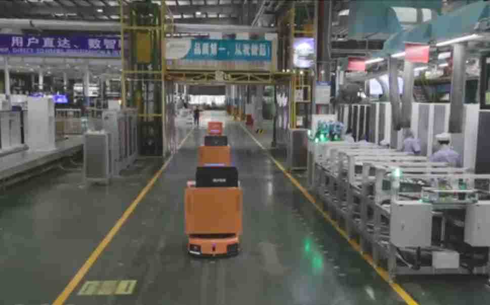 为车载冰箱物流配送打造的智能解决方案,,,包含产中物流通过潜伏举升AMR搬运至线边,,,产后成品物流智能仓储,,,流程包含产中物流智能齐套入库,,,,线边安灯叫料AMR智能配送至线边,,,成品入库、、、出库,,,通过无人堆高车机器人,,,,智能仓储管理替代人工作业管理,,实现更高存储、、、、更高效率、、、、更具柔性化的解决方案。。